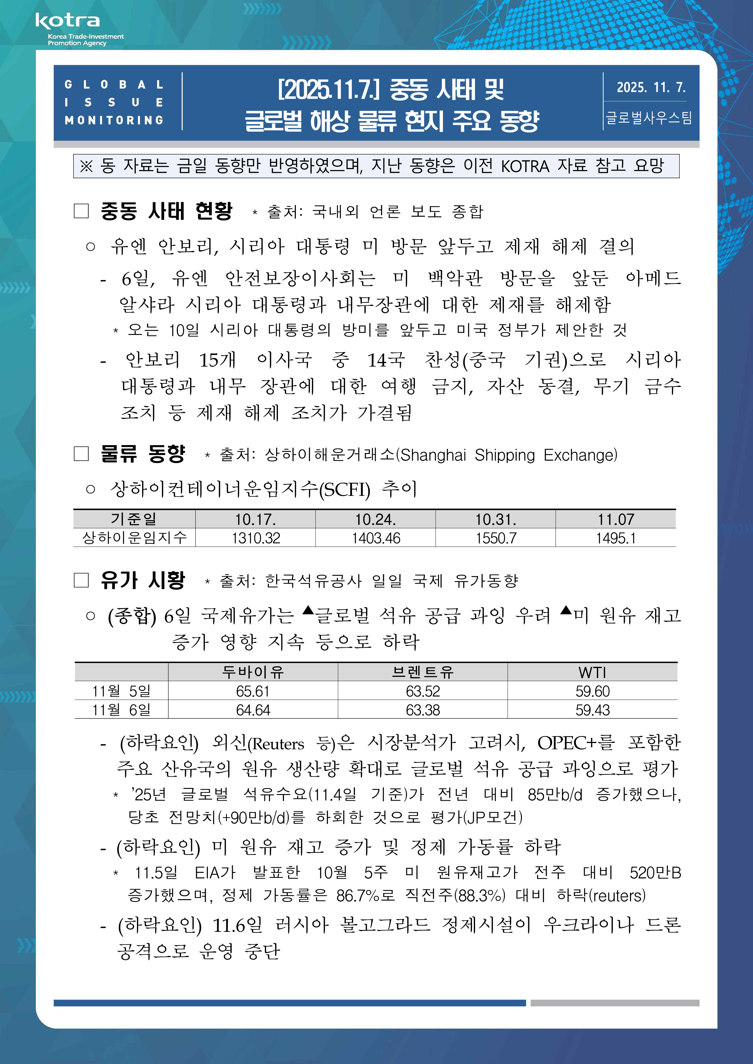 제목 [2025.11.7.] 중동 사태 및 글로벌 해상 물류 관련 현지 동향
